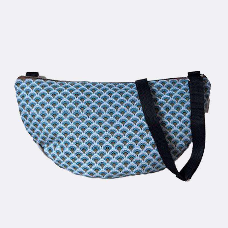 Nuevo modelo de bolso bandolera en forma de media luna y cierre en cremallera.