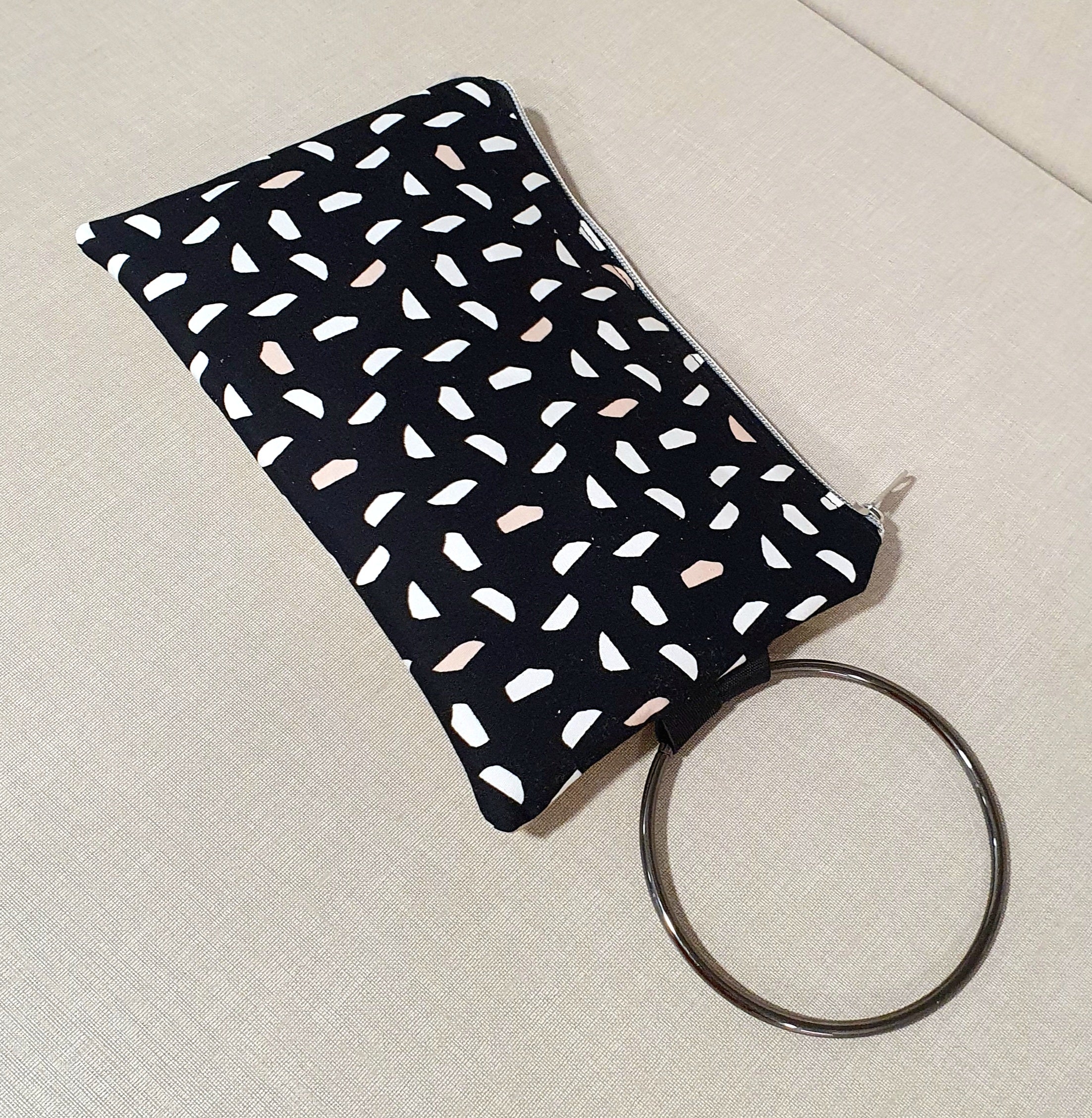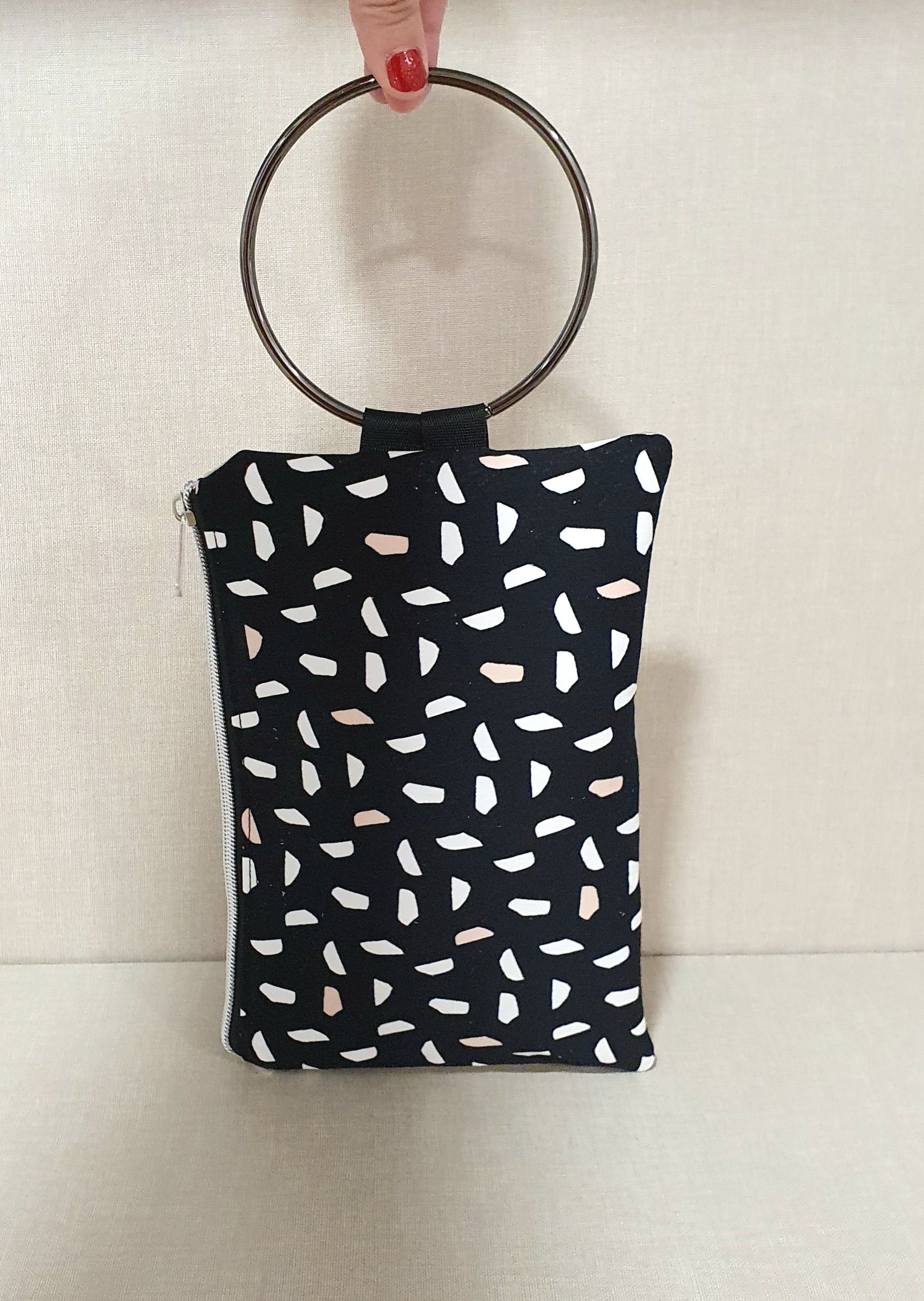 Bolso de tamaño pequeño, con abertura en cremallera. Asa de mano en aro.