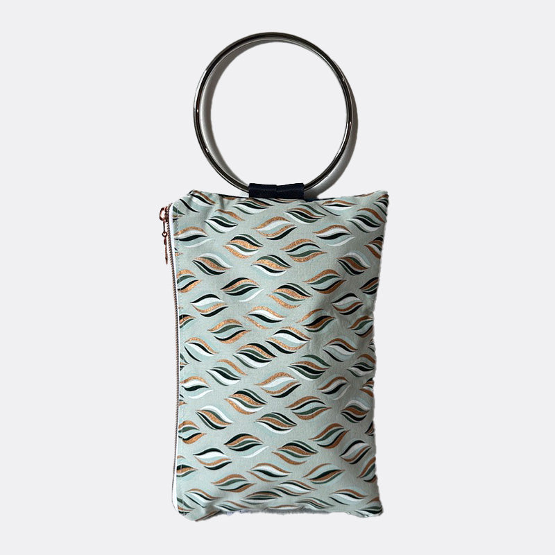 Tejido de algodón en tonos verdes y ocres y un toque brillante.