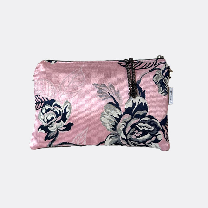 Bolso bandolera de tamaño pequeño, con abertura en cremallera. Asa en cadena.
