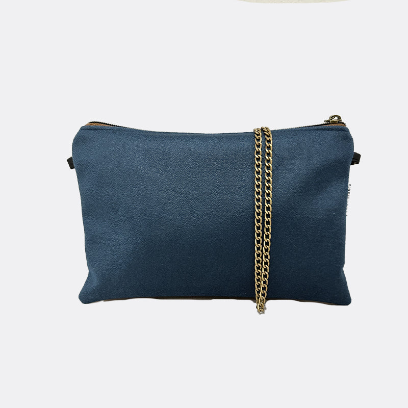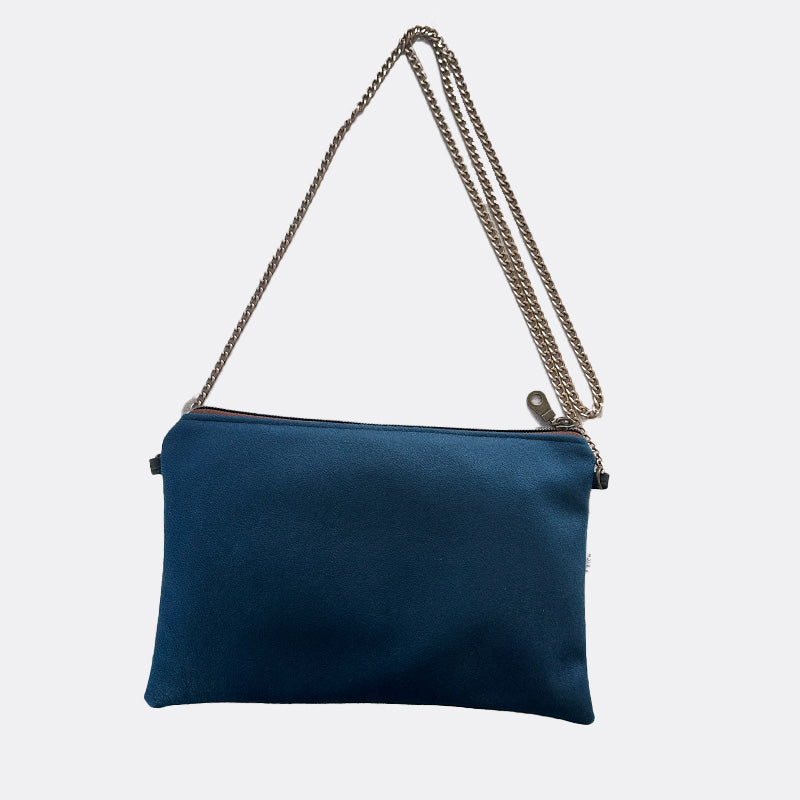 Bolso bandolera de tamaño pequeño, con abertura en cremallera. Asa en cadena.