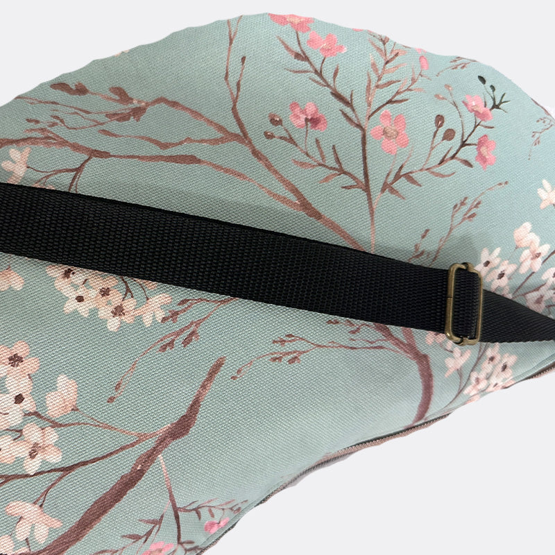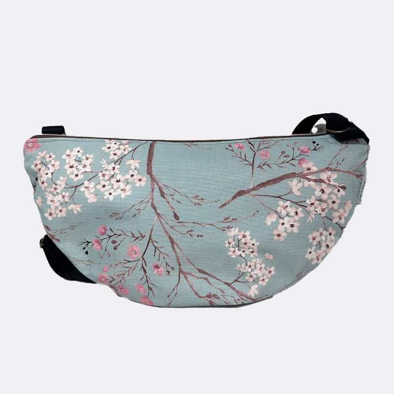 Nuevo modelo de bolso bandolera en forma de media luna y cierre en cremallera.